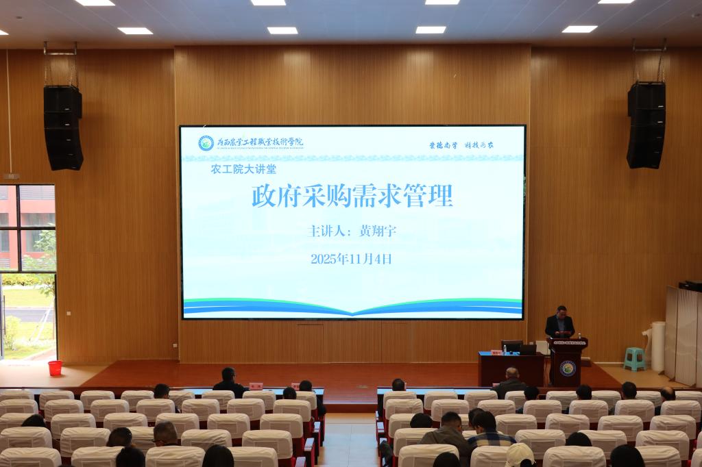 11月4日,第三十四期“农工院大讲堂”开讲,广西政府采购中心(公共资源交易中心)评标科、内审科科长黄翔宇以“政府采购需求管理”为题作专题讲座。学校党委书记马敏,党委副书记、校长李振科,副校长李祖培,总会计师韦炜出席讲座活动。