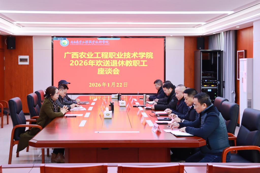 1月22日上午,我校在行政楼512会议室召开2026年欢送退休教职工座谈会,欢送张秋明、蓝宗林、覃勇燕三名退休职工。学校党委书记马敏,党委副书记、校长李振科,副校长李祖培,总会计师韦炜出席会议,党政办公室、组织人事处负责人以及工会相关工作人员参加座谈会。座谈会由李祖培主持。