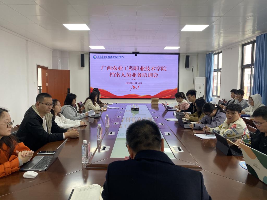 为进一步提升我校档案工作规范化、科学化水平,强化专兼职档案人员的业务能力,熟练操作新上线的智慧档案综合管理平台,1月16日下午,学校党委办公室在行政楼304会议室召开档案业务工作培训会。本次培训邀请广西祁瑞信息科技有限公司档案业务骨干、技术负责人主讲,来自各部门、二级学院的档案管理人员共计38人参加。