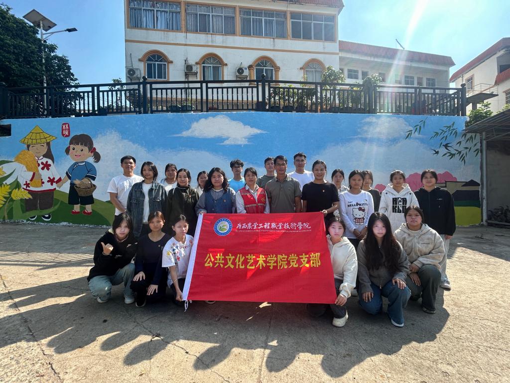 近日,公共文化艺术党支部组织党员教师带领入党积极分子,前往扶绥县林旺村,与林旺村党总支携手开展“笔墨绘新景,党群共筑梦”主题墙绘实践活动,以艺术赋能乡村建设,用实际行动美化村容村貌,传播文明新风。