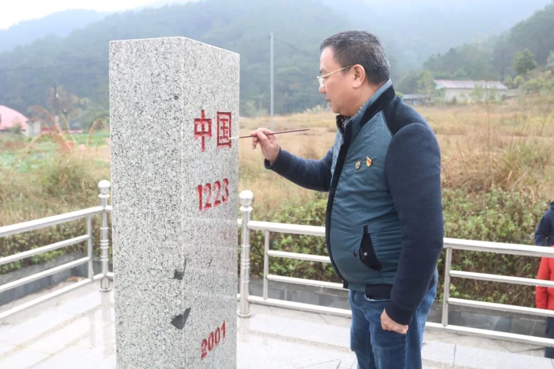 学员们来到爱店口岸,赴1223—1224号界碑开展主题活动。“我志愿加入中国共产党……”在界碑前,全体党员举起右拳,重温入党誓词,铿锵誓言回荡在边境线上,既是对革命先烈的告慰,也是对初心使命的坚守。学员们手持红色颜料,小心翼翼地为界碑描红,一笔一画间,不仅让界碑焕发光彩,更擦亮了心中的爱国底色。