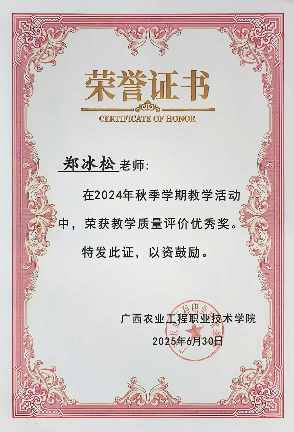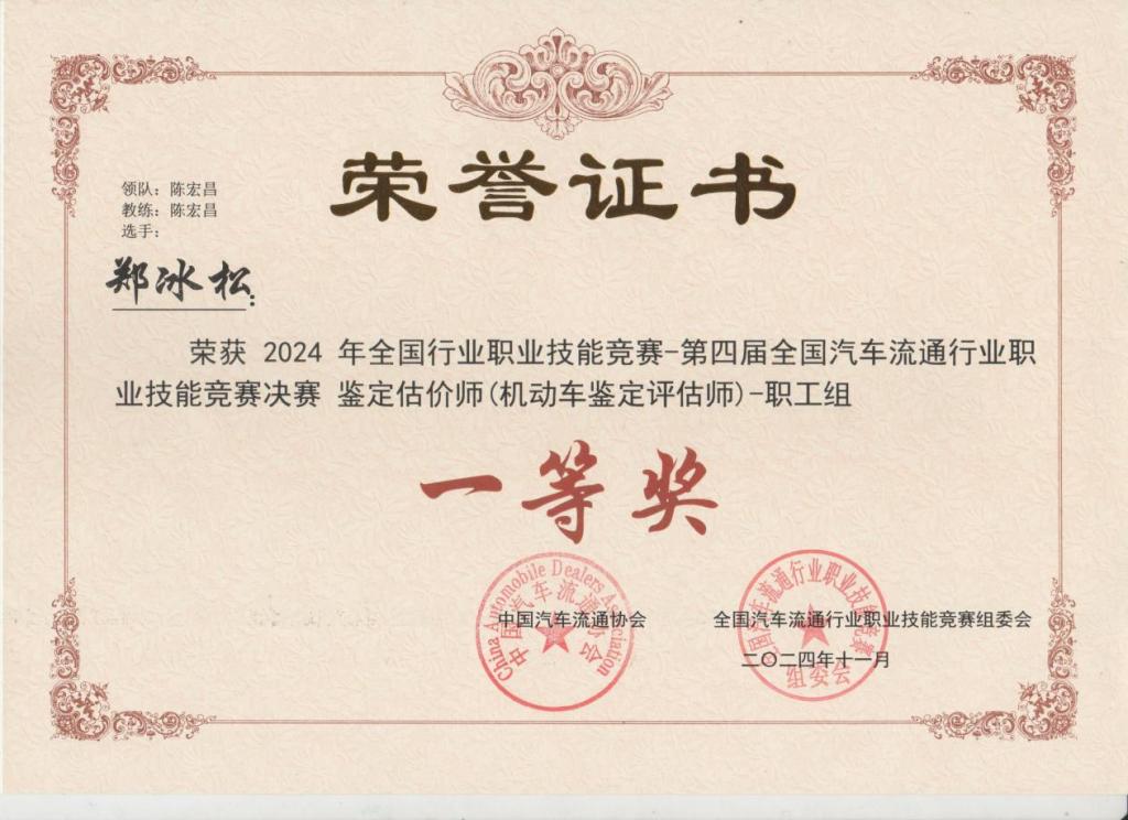 郑冰松所获荣誉