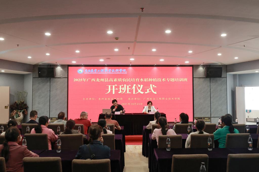金秋十月,稻浪飘香。为夯实粮食安全根基,培育新时代农业领军人才,龙州县2025年高素质农民培育水稻种植技术专题培训正式开班。本次培训由龙州县农业农村局主办,广西农业工程职业技术学院承办,旨在通过“理论+实践+数字化”的全方位培育模式,为龙州县水稻产业高质量发展注入强劲人才动能。