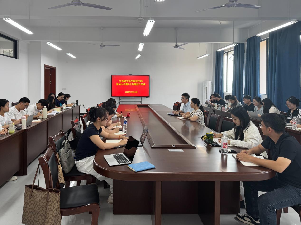 9月23日,马克思主义学院党支部在思政楼5楼会议室召开党员大会,并开展以“传承抗战精神 凝聚奋进力量”为主题的党日活动。