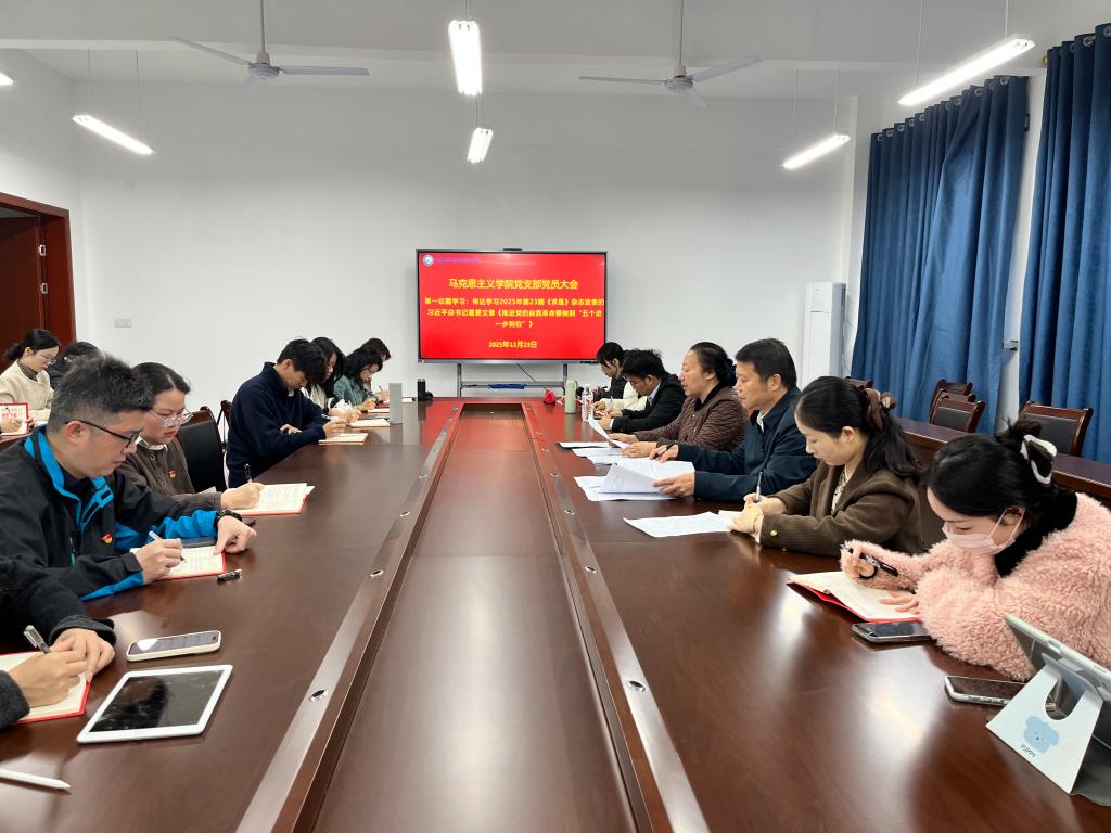 2025年12月23日,马克思主义学院党支部召开党员大会,专题学习《中国共产党党员网络行为规定》。学校党委书记马敏以普通党员身份参加主题党日活动,与支部党员一起交流学习,党支部书记石立波主持会议。