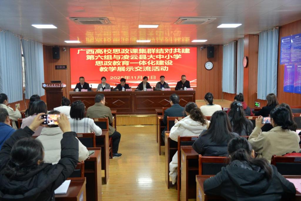 2025年11月20日至21日,我校马克思主义学院组织骨干教师赴广西百色市,参加由多所院校与地方教育部门联合举办的结对共建备课会暨大中小学思政课一体化建设研讨会。活动在广西工程职业学院、百色职业学院及凌云县第二中学分阶段举行,来自区内多所高校、中职及中小学的思政课教师代表共聚一堂,围绕课程衔接、教学创新与协同育人展开深入交流。