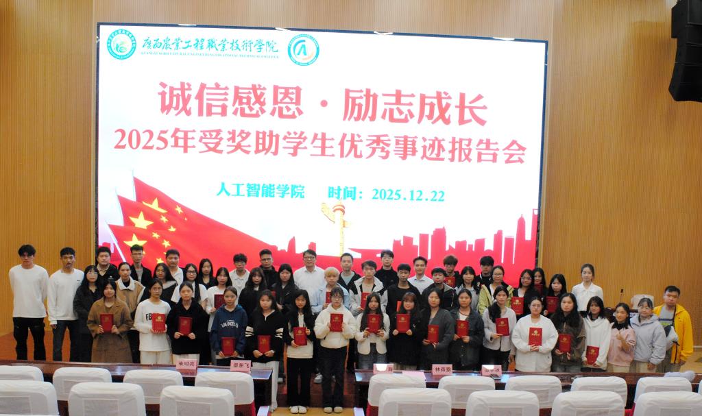 为深入落实立德树人根本任务,充分发挥资助育人实效,树立先进典型,激励广大学子奋发成才,2025年12月22日,人工智能学院在2号阶梯教室举办了诚信感恩·励志成长——受奖助学生优秀事迹报告会。人工智能学院副院长江咏海、学工处负责资助老师及学院师生参加。