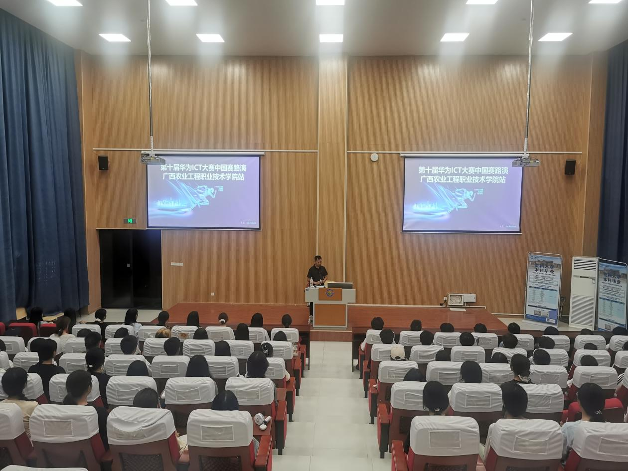 为激发学生参赛积极性、促进ICT人才培养,2025年10月14日,第十届华为ICT大赛系列路演活动走进广西农业工程职业技术学院。活动由人工智能学院牵头组织,华为技术有限公司主办,广西帆联科技有限公司协办,旨在通过赛事宣讲与技术交流,推动以赛促学、以赛促教,为校内学子深度解读大赛赛制、赛道设置及备赛要点,激发参赛热情,赋能数字人才成长。