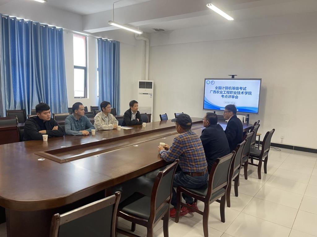 为进一步完善办学条件、提升人才培养质量与社会服务能力,推动全国计算机等级考试考点申报工作落地,11月7日,自治区招生考试院专家受邀莅临广西农业工程职业技术学院,围绕我校考点申报资质开展考核评审,并与学校总会计师韦炜及相关部门负责人,在智能楼501会议室共同召开全国计算机等级考试考点评审会。