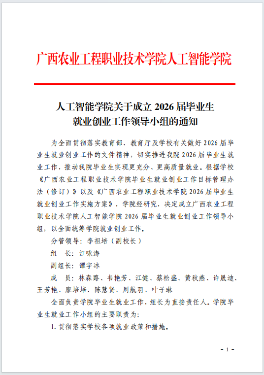 人工智能学院关于成立2026届毕业生就业创业工作领导小组的通知