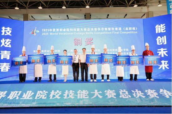 9月8-12日,2025年世界职业院校技能大赛总决赛餐饮赛道高职组比赛在辽宁现代服务职业技术学院正式开赛。我校食品工程学院参赛队伍凭借扎实的专业功底与鲜明的文化特色,从众多参赛队伍中脱颖而出,荣获铜奖,实现了学校在该赛事中的“零突破”。