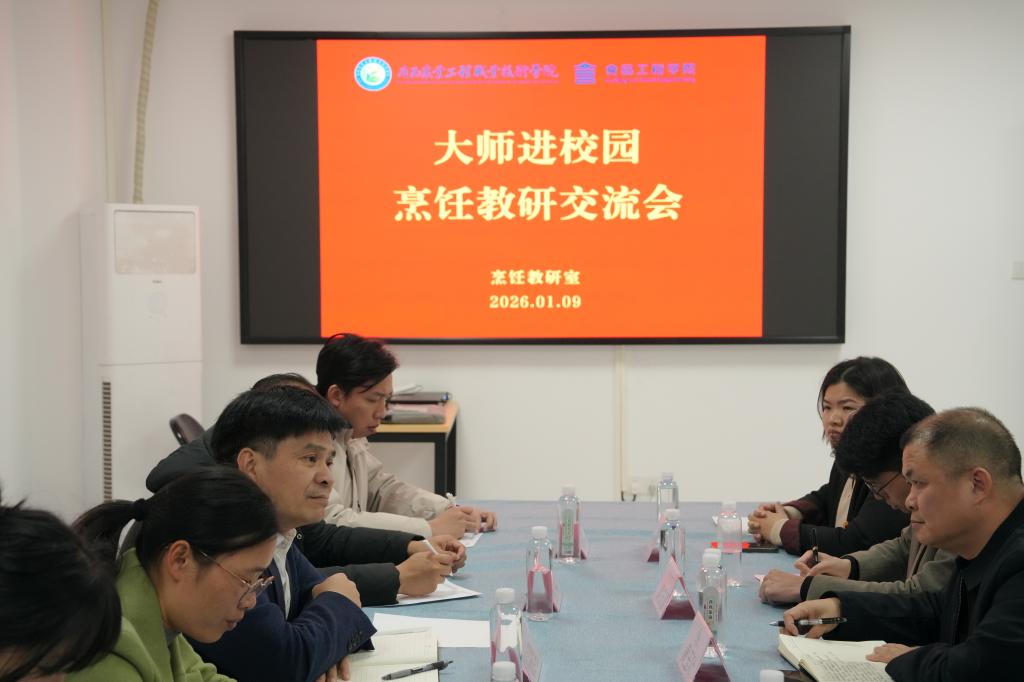 为深化产教融合、传承桂菜文化、赋能人才培养,2026年1月9日下午,食品工程学院在二号阶梯教室成功举办“大师进校园”专题讲座暨烹饪教科研交流活动。活动特邀国务院特殊津贴专家、广西工匠谭兴勇教授亲临指导,学院副院长黄玉叶、烹饪教研室主任及学院全体教师,与食品工程学院全体在校学生共同参与。