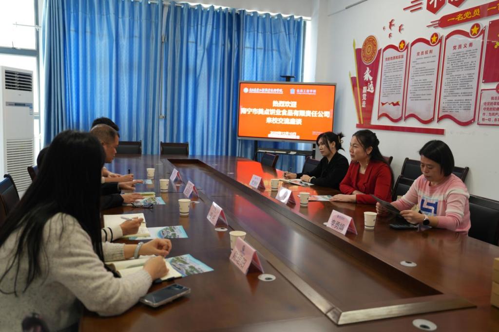 为深化产教融合、推动校企资源共享,12月10日,南宁市美点饼业食品有限责任公司总经理谢琴一行来访我校,与食品工程学院开展合作座谈。学院副院长黄玉叶及相关骨干教师参加交流。